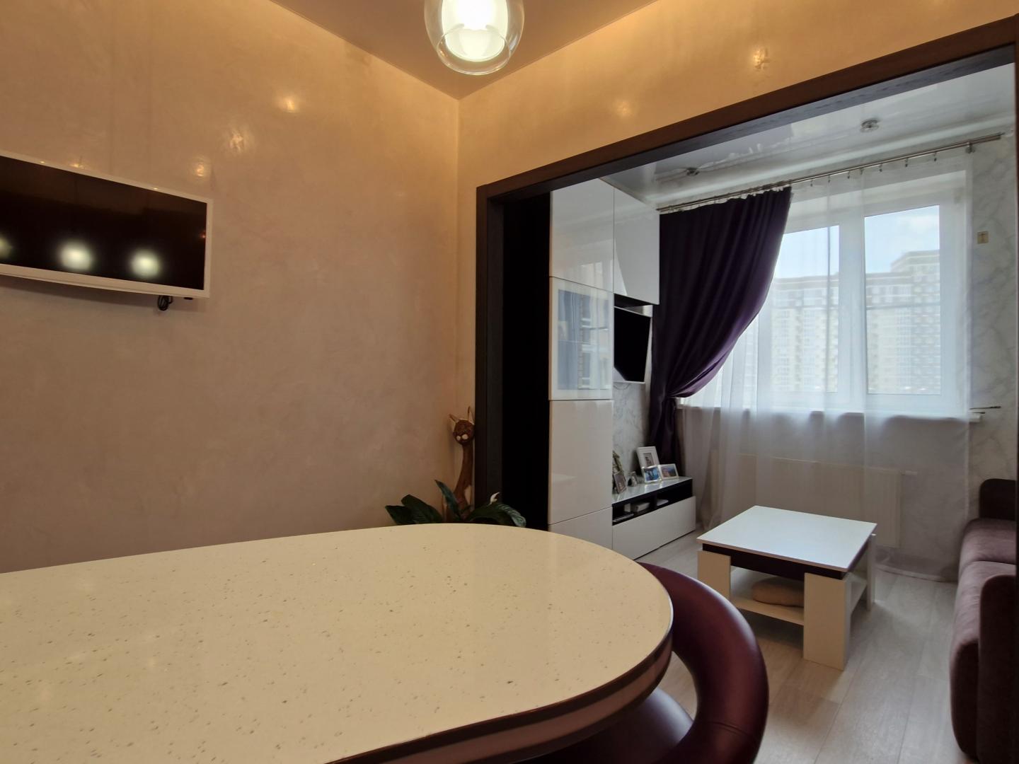 Квартира с ремонтом, мебелью и бытовой техникой в жилом комплексе Татьянин Парк на западе Москвы. Просторная кухня-гостиная, спальня с балконом, дополнительная проходная комната, которую можно использовать под гардеробную, гостевую или детскую. Метро Говорово в 9 минутах пешком от дома, рядом большой торговый центр, фитнес, детский сад и школа. Благоустроенные дворы, пруд с набережной с местами для отдыха.