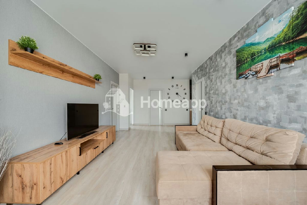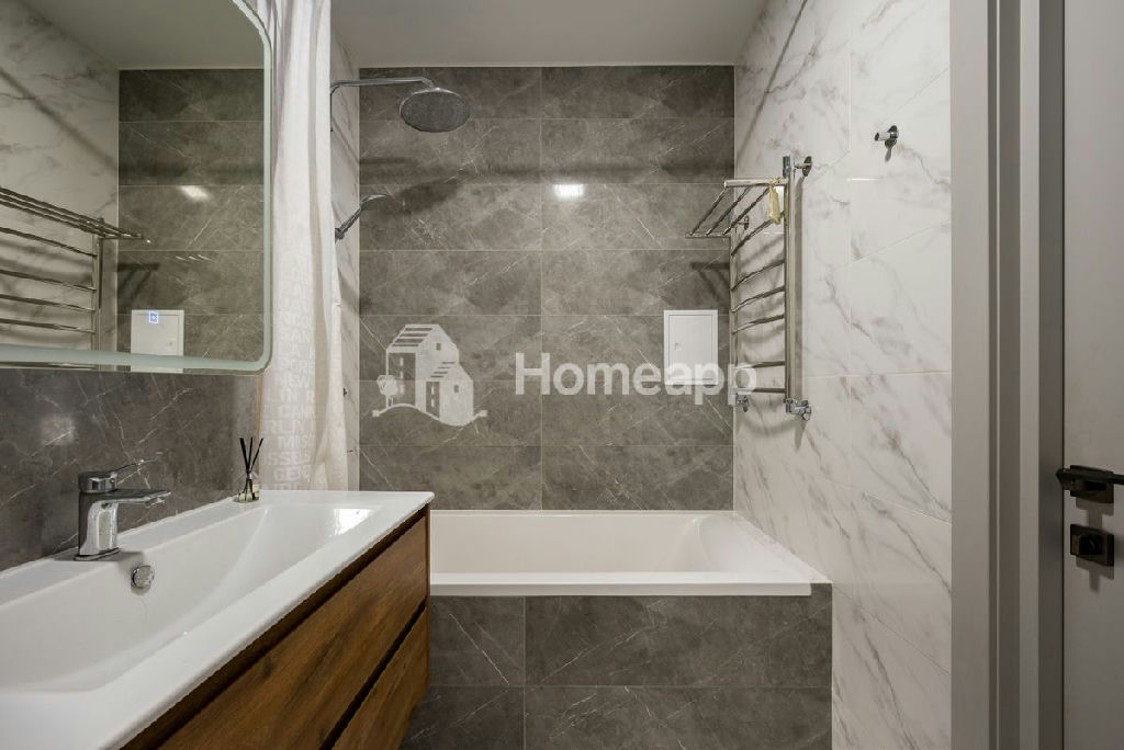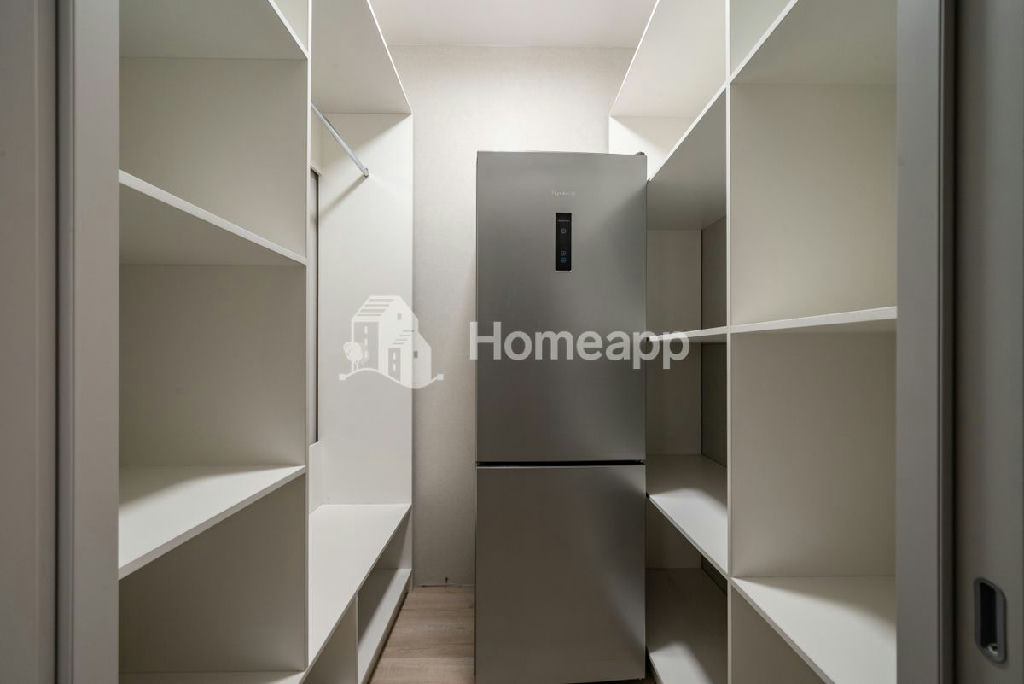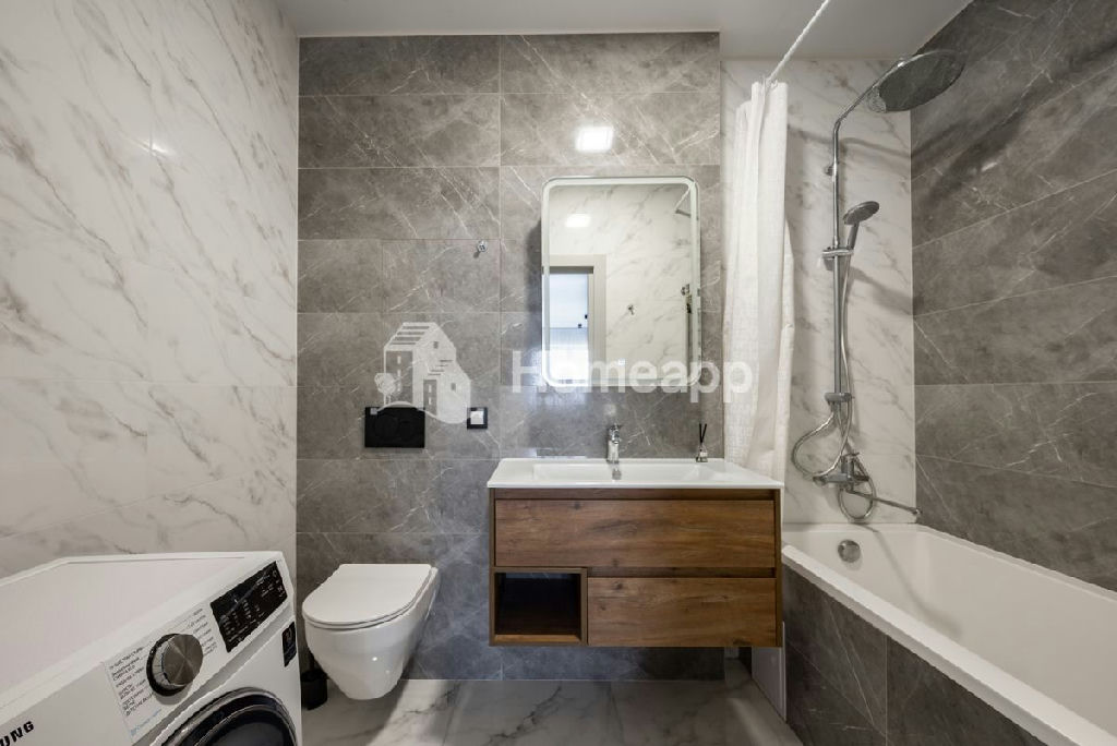 Жильё полностью меблировано и оснащено современной бытовой техникой. Стильная мебель создаёт атмосферу утончённого комфорта. В квартире установлены тёплые полы, предусмотрена вместительная гардеробная.