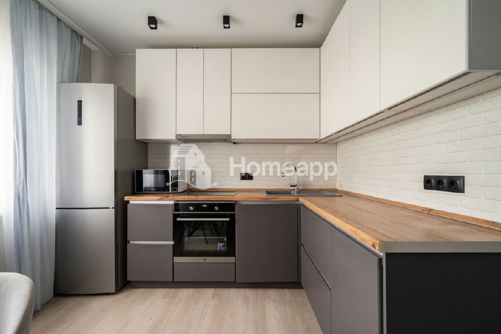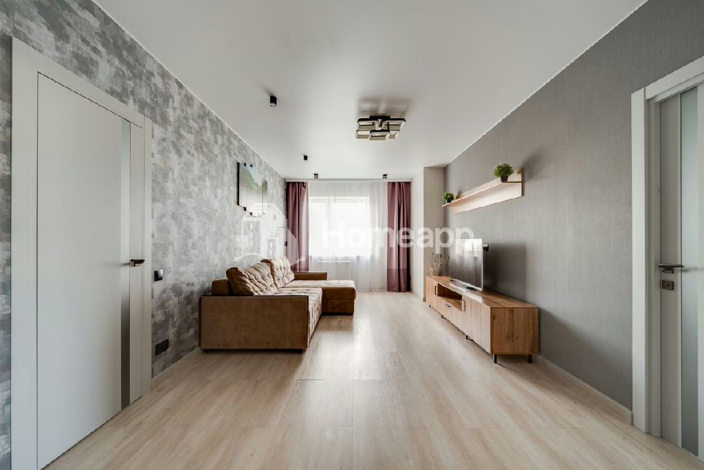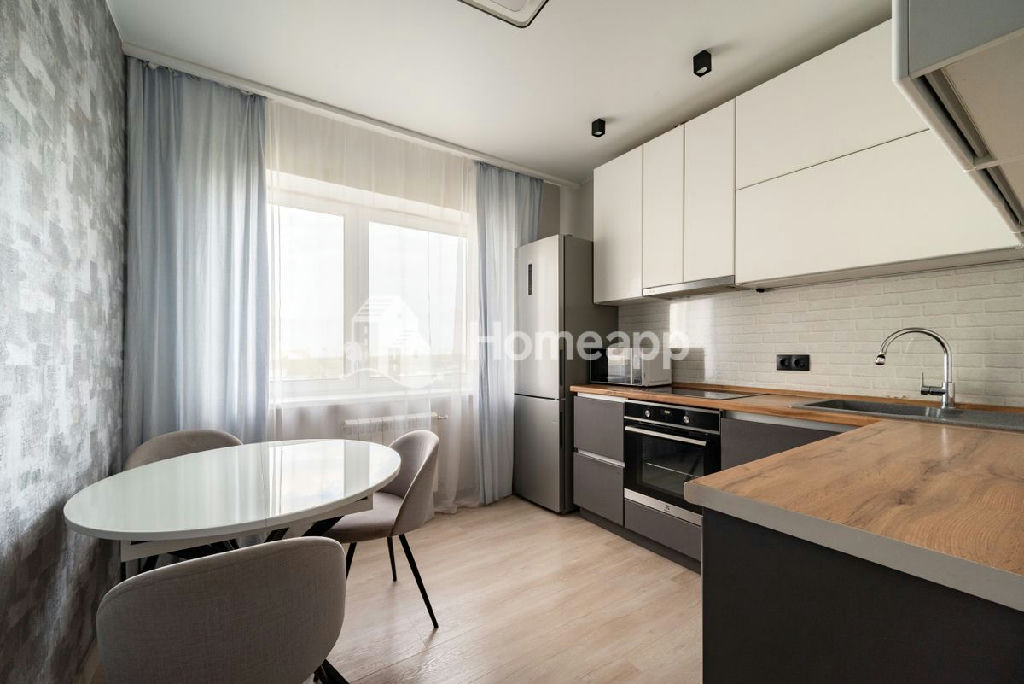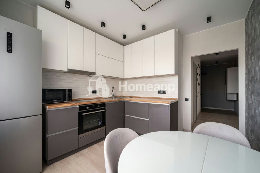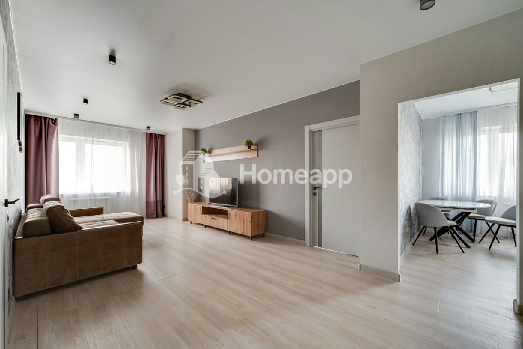 Жильё полностью меблировано и оснащено современной бытовой техникой. Стильная мебель создаёт атмосферу утончённого комфорта. В квартире установлены тёплые полы, предусмотрена вместительная гардеробная.