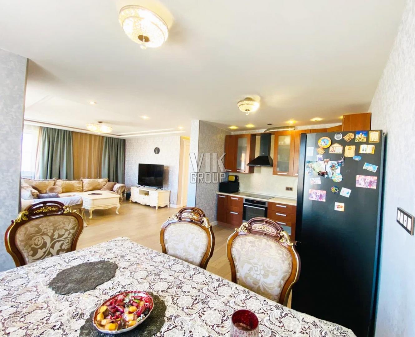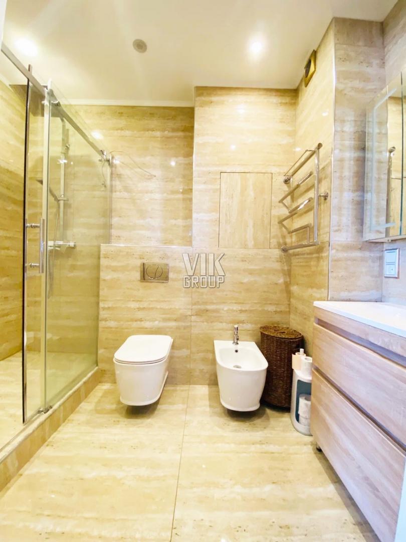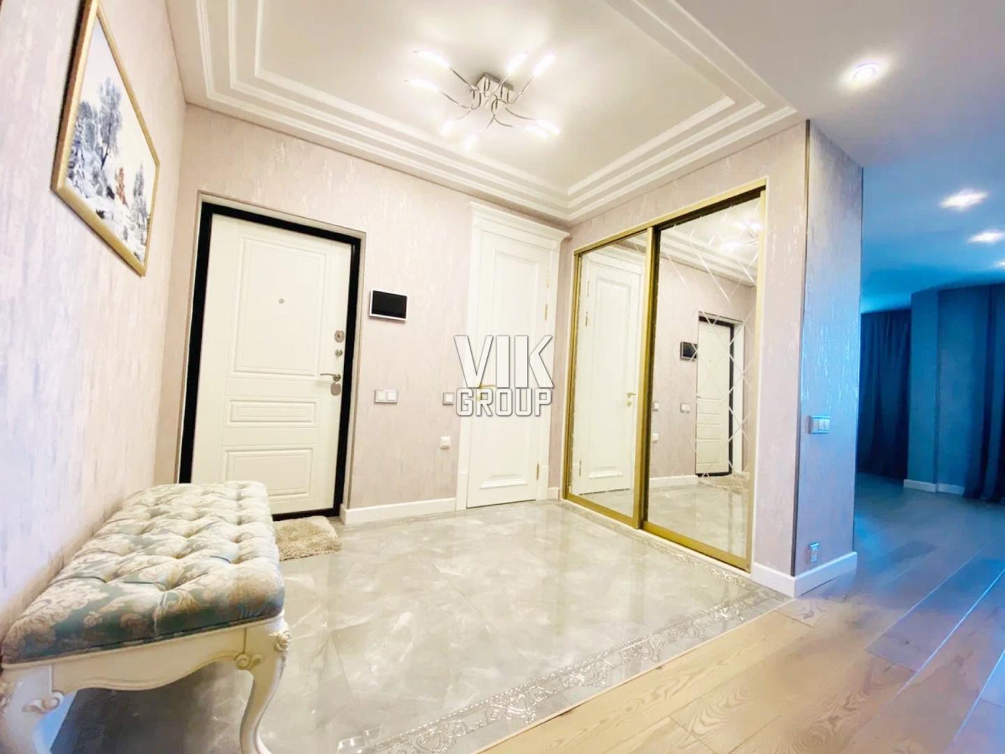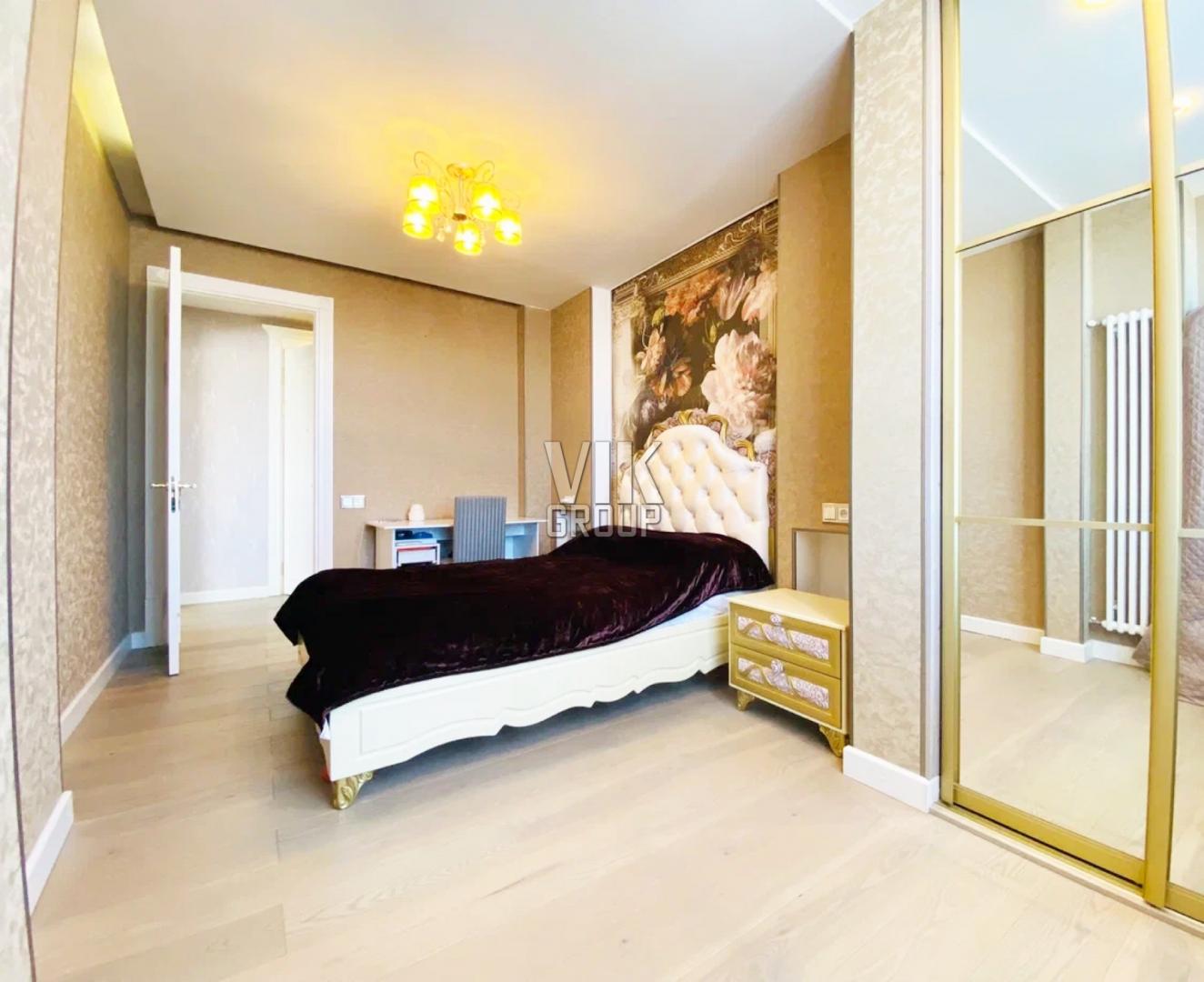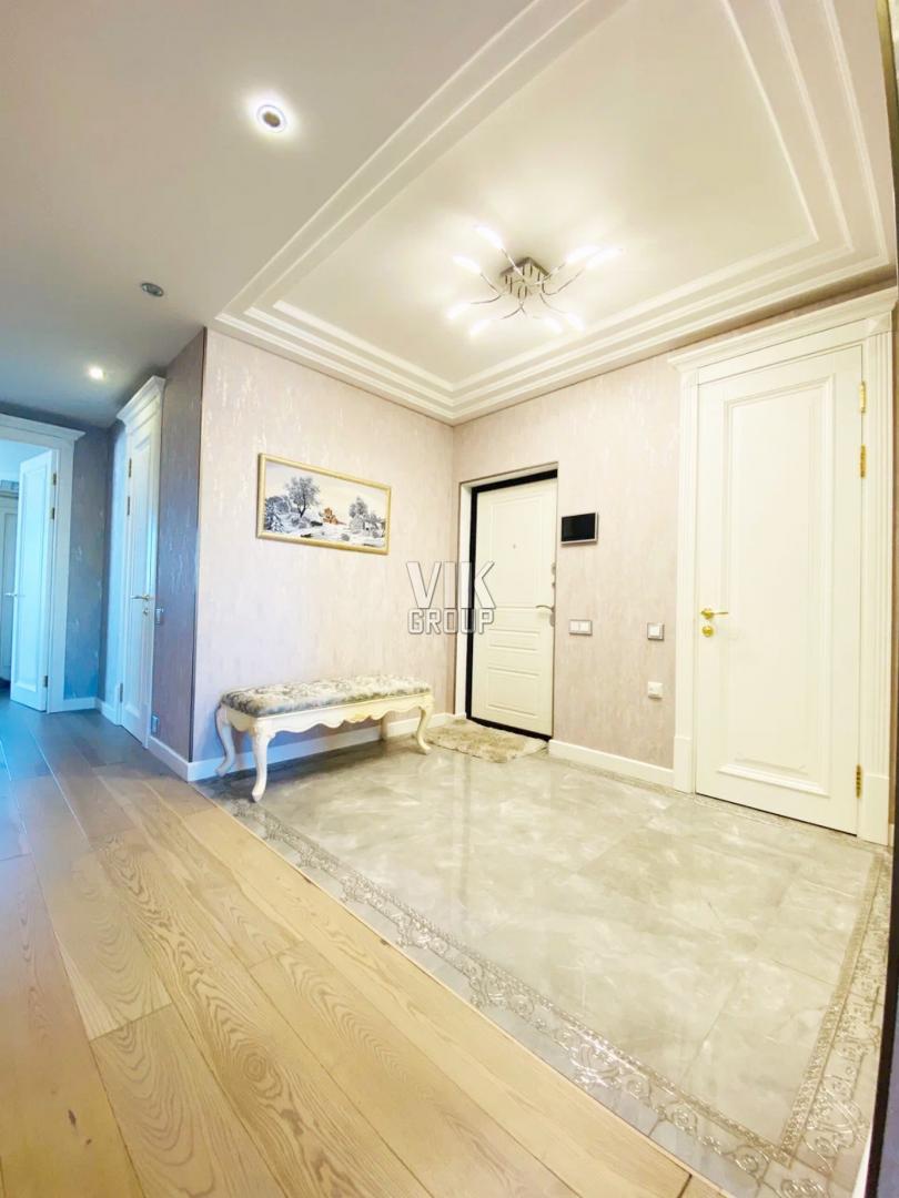 Продается четырёхкомнатная квартира с евроремонтом по ул Татьянин Парк д 15 корп 2 в ЖК Татьянин Парк Западного округа Москвы. Квартира расположена на 13 этаже 17 этажного монолитно-кирпичного дома, построенного в 2017 г. Квартира с интересной и функциональной планировкой, общей площадью с учетом холодных помещений 115кв.м, жилая 80кв.м. Два санузла. Три комнаты изолированные, распашонка: 20-15-15кв.м с прекрасным панорамным видом из окон на три стороны дома: на тихий двор и на озеро. Просторный зал (30кв.м) с тремя окнами, объединён с кухней-гостиной 20кв.м. Гостиная оборудована встроенным кухонным гарнитуром, бытовой техникой (эл варочная панель, вытяжка Elikor, духовой шкаф, посудомоечная и стиральная машинка фирмы Miele). В большой спальне два окна с завораживающим видом на озеро. Небольшая комната украшена красивым цветочным панно у изголовья кровати. 1 санузел 7кв.м облицован бежевой плиткой, с ванным гарнитуром, большой душевой зоной со стеклянной перегородкой , подвесным биде и унитазом. Гостевой санузел 3кв.м отделан плиткой в светло-серых тонах, с нишами в стене, подвесным унитазом и умывальником. Просторный холл 10кв.м со встроенным шкафом с красивой зеркальной поверхностью. В квартире выполнен отличный ремонт в светлых тонах из качественных строительных материалов: установлены стеклопакеты; кондиционеры; в комнатах вертикальные радиаторы отопления; двойные фигурные потолки с ленточной подсветкой и точечными светильниками; красивые белые межкомнатные двери с позолоченными ручками; установлена система теплых полов; на полу в комнатах паркетная доска; на кухне, в санузлах и в коридоре – плитка; в комнатах - встроенные шкафы изготовлены на заказ; входная антивандальная железная дверь, домофон с видеонаблюдением. Без балкона. Высота потолков 3м. Кадастровый № 77:17:0110502:3867. Тамбур на 4 квартиры с железной дверью. Отличная, просторная входная группа подъезда, 2 лифта (пассажирский и грузовой), место для консьержа. Благоустроена территория дома, большое количество наземных парковочных мест, рядом подземный паркинг, современные детские и спортивные площадки. Квартира расположена в одном из лучших корпусов комплекса. Развитая инфраструктура района, рядом школа, гимназия, д/сады, поликлиника, аптеки, салоны красоты, банки, магазины, рестораны, ТЦ, фитнес клуб с бассейном. В шаговой доступности пруд с зонами отдыха, православный храм, Говоровский лес, Мещерский парк. Хорошая транспортная доступность. Удобный выезд на МКАД, Боровское шоссе. До метро Говорово 3 минут пешком, не далеко ж/д станция Мещерская. 1 собственник, свободная продажа!